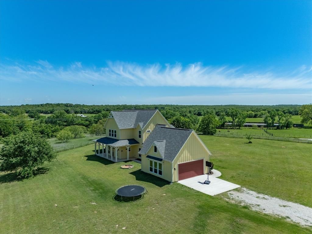 Discover country living at its finest in this exquisite 4-bedroom, 3-bathroom craftsman style home nestled on 5 acres of picturesque land in Sunset, TX. This stunning home boasts an abundance of natural light, tall ceilings, and exposed beams in the living room and kitchen, creating a warm and inviting atmosphere. The chef's kitchen features quartz countertops, stainless steel appliances, custom-built cabinets, and a walk-in pantry, perfect for culinary enthusiasts. Retreat to the primary bedroom downstairs, complete with an attached office, walk-in closet, and en-suite bathroom. Upstairs, a spacious game room or second living room awaits, accompanied by two additional bedrooms and a full bathroom, providing ample space for family & guests. Downstairs off of the main living room there is the fourth bedroom and a second living room. The all window porch provides additional space to entertain and relax during all seasons. Enjoy peace of mind with an in-ground storm shelter. With lush trees, a fenced perimeter and all weather road this home offers privacy and tranquility at every turn. Don't miss your chance to experience the beauty of country living in this extraordinary property!