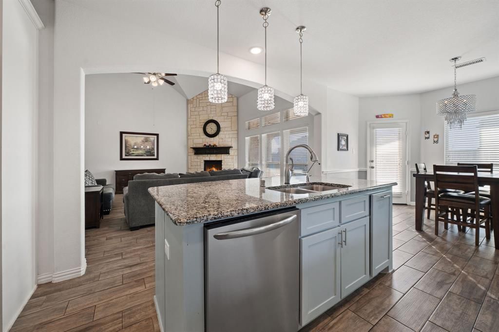 Situated on an oversized 0.34-acre corner lot, this stunning home—built by First Texas Homes—features a beautiful pool with water features, perfect for outdoor enjoyment. The striking stone-accented elevation and inviting front porch create a grand first impression, complemented by a glass and wrought iron front door, smart side garage doors, and a full smart home and Brentwood wiring package. Additional upgrades include exterior uplighting and a custom-designed media room with dark paint and sconce lighting for a true theater experience.Step inside to a grand entry showcasing a curved staircase with iron balusters, leading to a private office with French doors and an elegant formal dining room. The open-concept living area boasts soaring ceilings and a dramatic two-story stone fireplace, creating the perfect space for entertaining.The gourmet kitchen blends style and function with granite countertops, a gas cooktop, double ovens, an oversized island with breakfast bar seating, a butler’s pantry with glass-front cabinetry, and a walk-in pantry.The luxurious primary suite offers a spa-inspired retreat with dual vanities, a soaking tub, and a separate shower. Upstairs, you’ll find a spacious game room, a media room, and three generously sized bedrooms—each with walk-in closets—along with two full bathrooms connected by a convenient Jack-and-Jill layout.Throughout the home, enjoy expansive wood flooring (no ceramic tile), a full pool bath downstairs, and a large utility room designed for everyday convenience. The 3-car garage features epoxy-coated floors for both durability and style.Step outside to a covered back patio overlooking the sparkling pool, creating a true backyard oasis.Located just one mile from the highly anticipated Bellagio Lagoon, future residents will enjoy access to a resort-style destination featuring crystal-clear waters and world-class amenities—bringing luxury living even closer to home. Don't wait schedule your showing today!